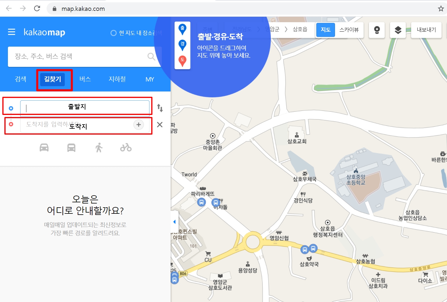 길찾기 클릭 - 출발지, 도착지 입력하시면 됩니다.