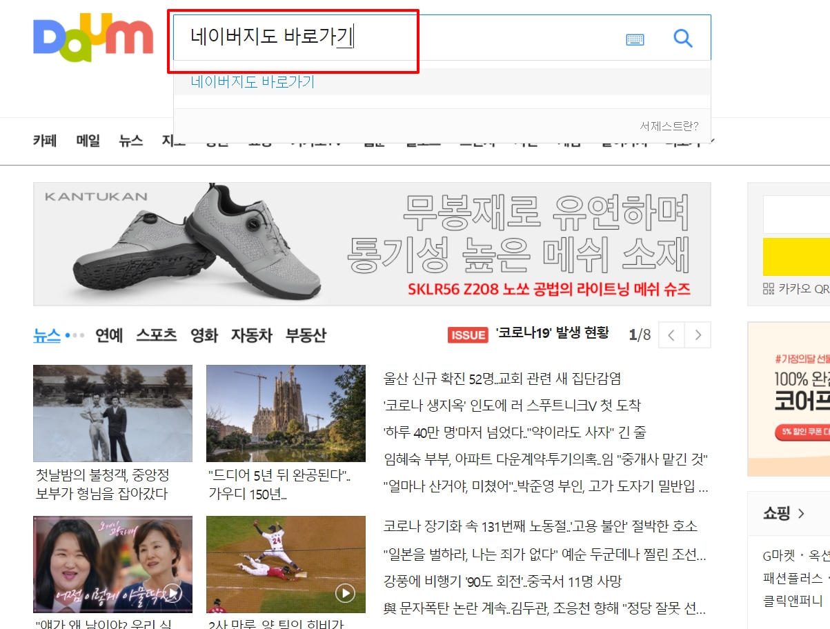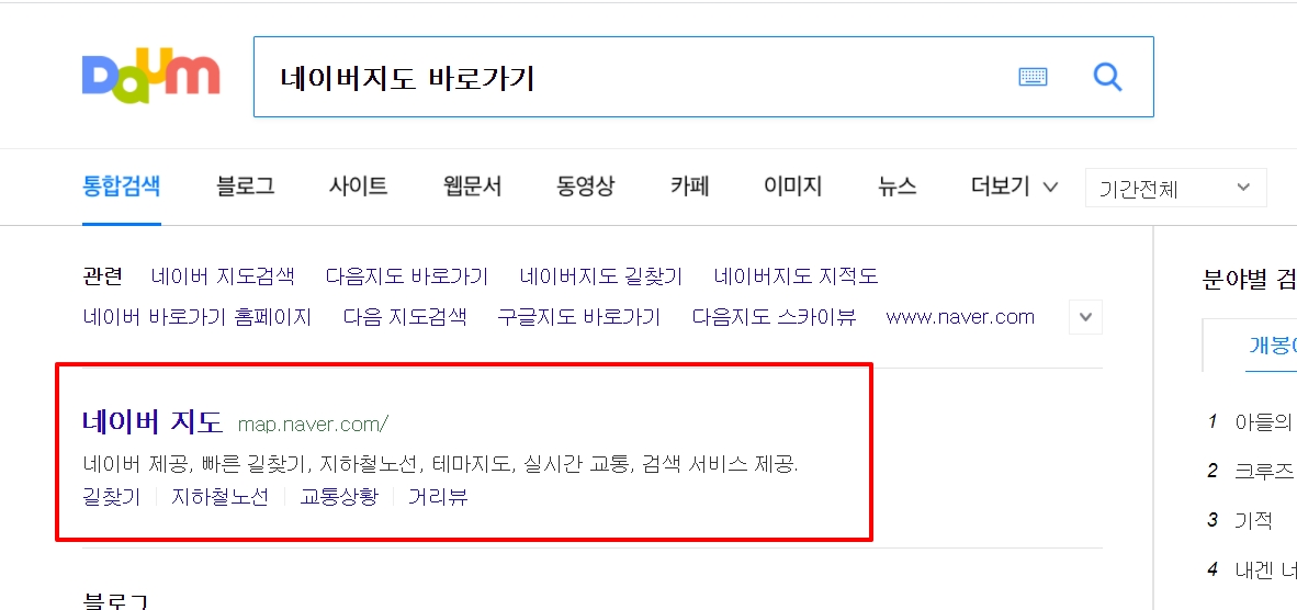 1. 다음(daum)검색창에 "네이버지도 바로가기"를 검색합니다.