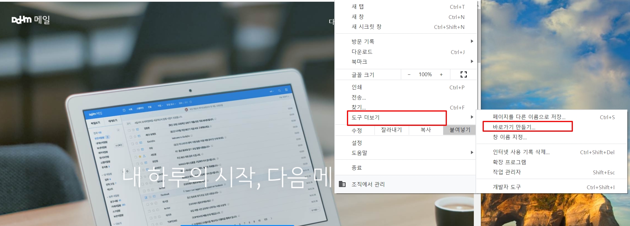 6. 바탕화면에 "다음메일" 아이콘이 뜹니다. 아이콘만 클릭하시면 다음메일 사이트에 바로 접속하셔서 메일을 확인하실 수 있고, 보내실 수도 있습니다.