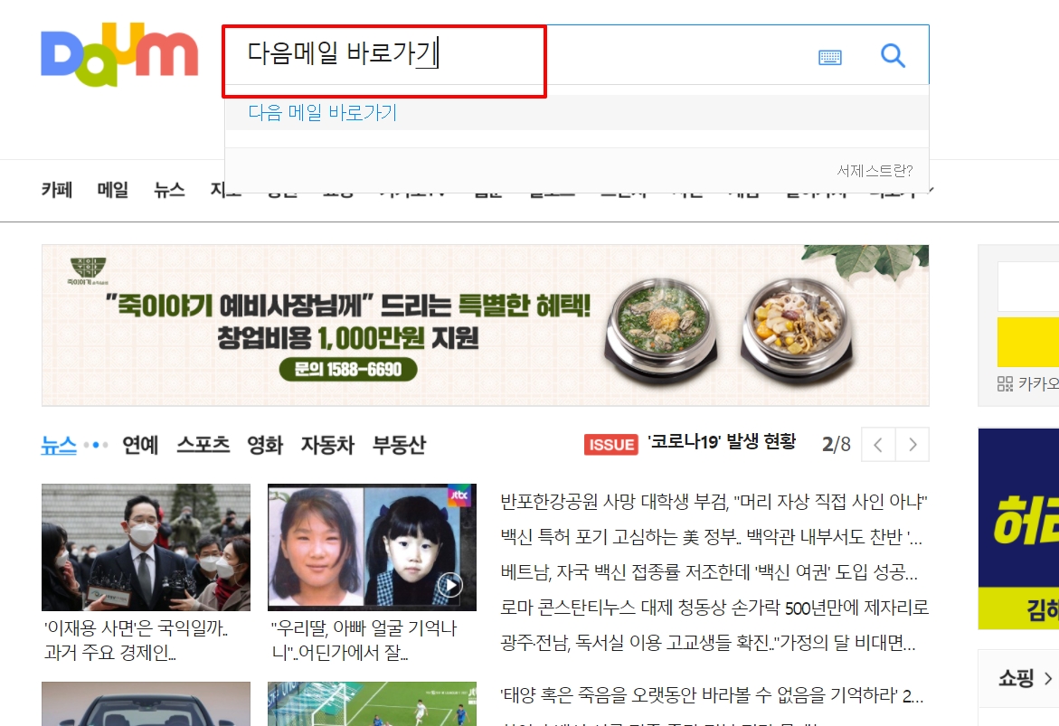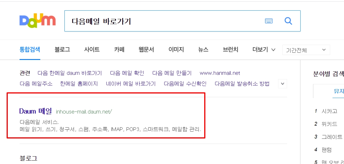 1. 다음(daum)검색창에 "다음메일 바로가기"를 검색합니다.