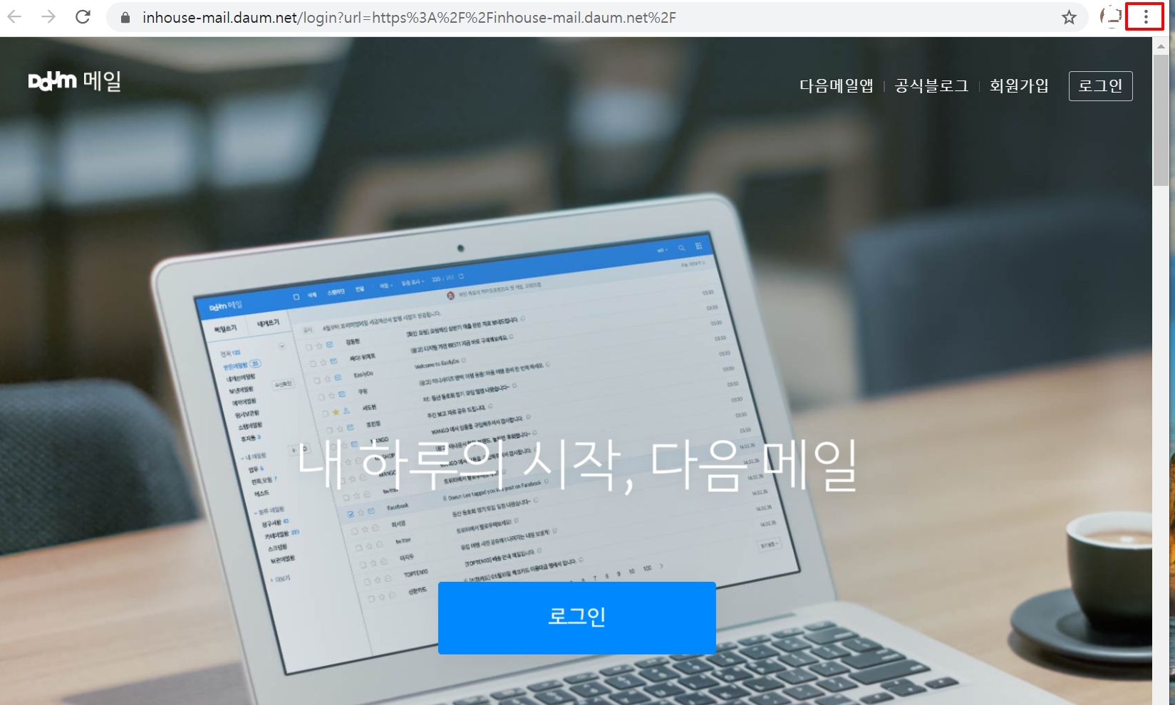 3. "다음메일" 사이트에 접속하여 오른쪽 상단에 보시면 "점 3개"를 클릭합니다.