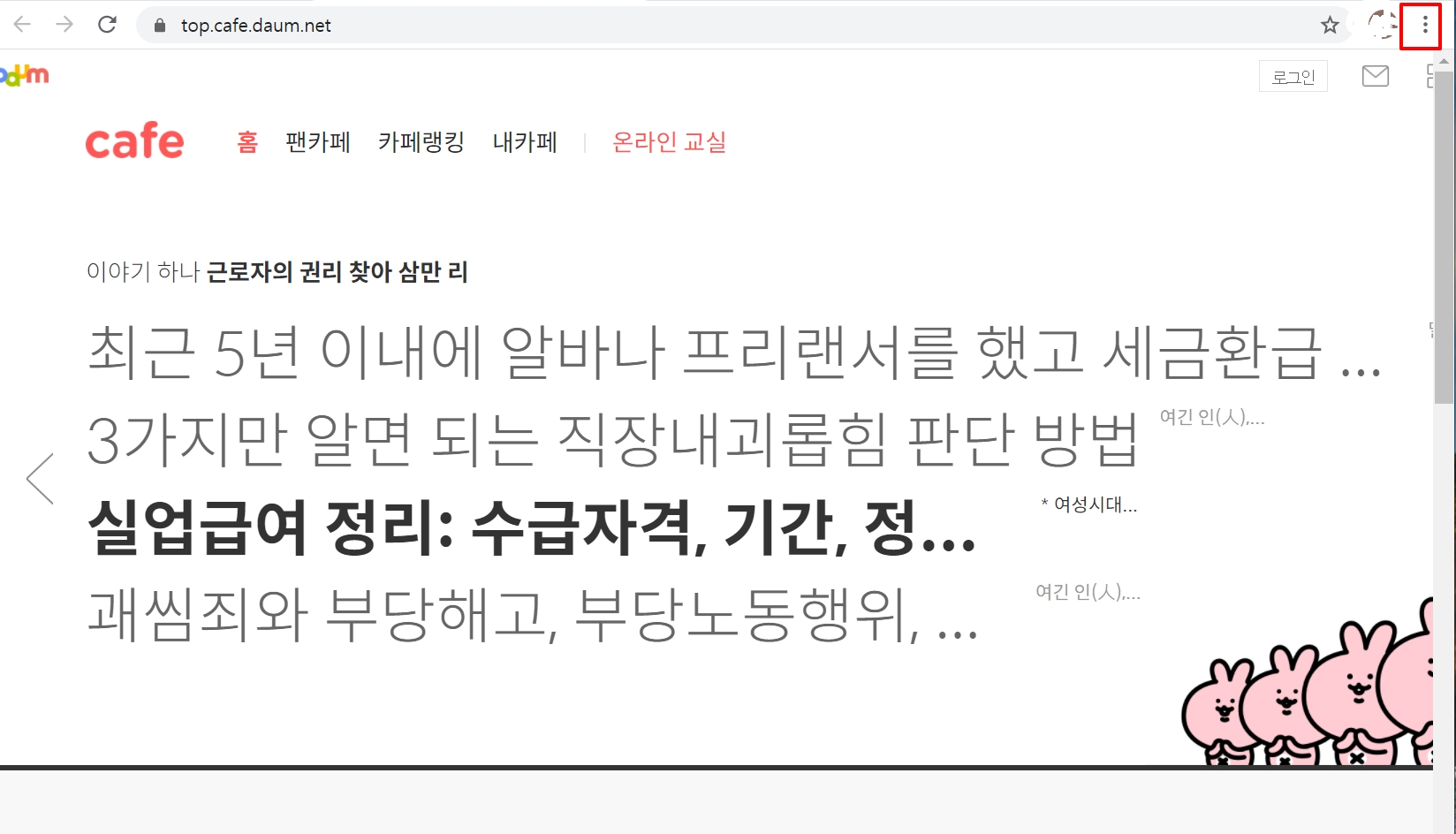 3. "다음카페" 사이트에 접속하여 오른쪽 상단에 보시면 "점 3개"를 클릭합니다.