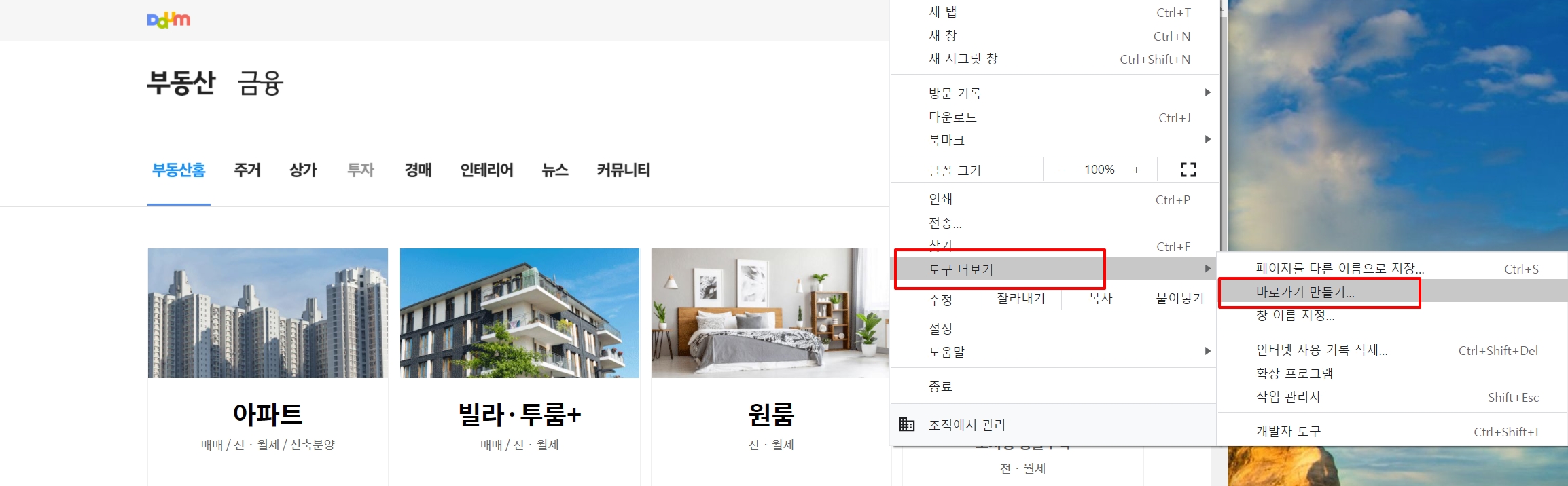 □ 다음부동산 바로가기 방법