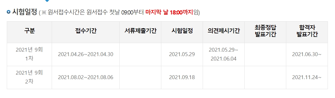 행정사 시험은 1. 2차가 있습니다. 시험일정은 다음표와 같습니다.