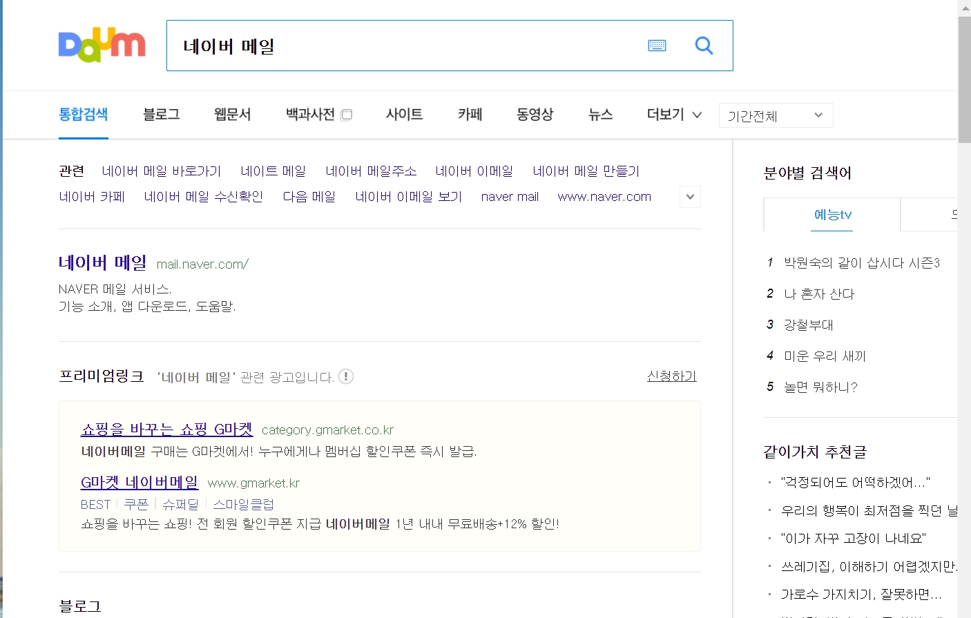1. 다음(daum)검색창에 "네이버 메일"을 검색합니다.