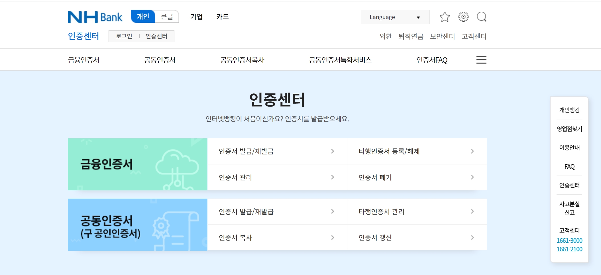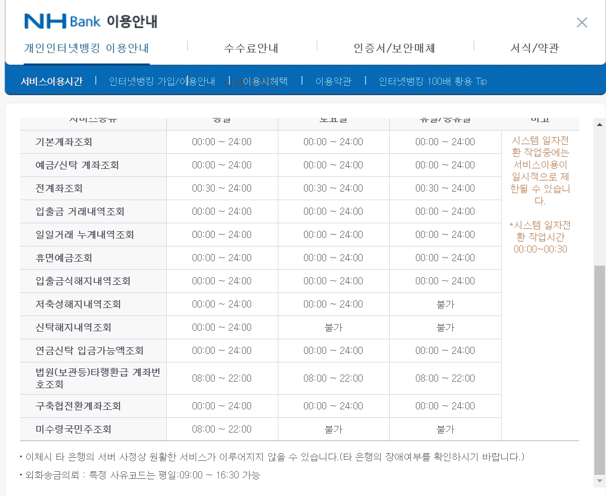 농협 인터넷뱅킹 바로가기, 공인인증서, 이용시간, 공인인증서 재발급