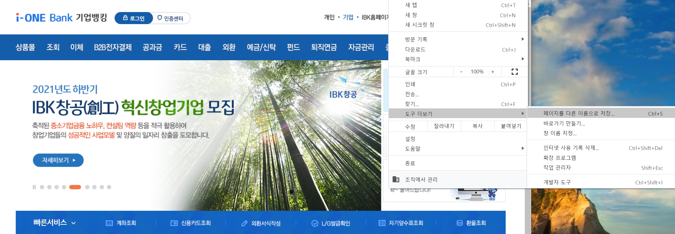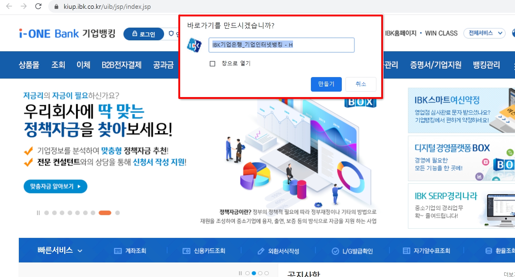 기업은행 기업인터넷뱅킹 바로가기, 홈페이지, 빠른 조회