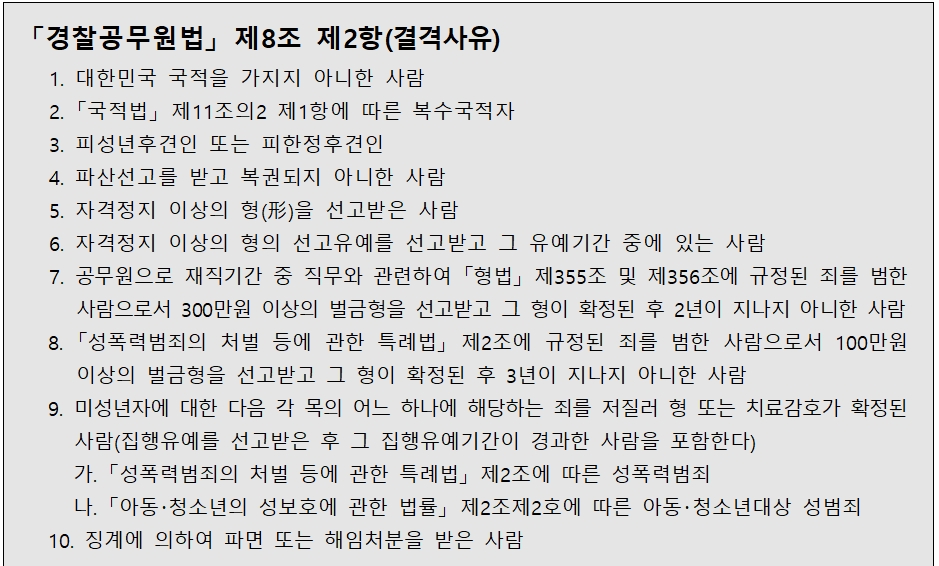○ 경찰공무원법 제8조 제2항 각호의 '임용결격사유'에 해당하는 자