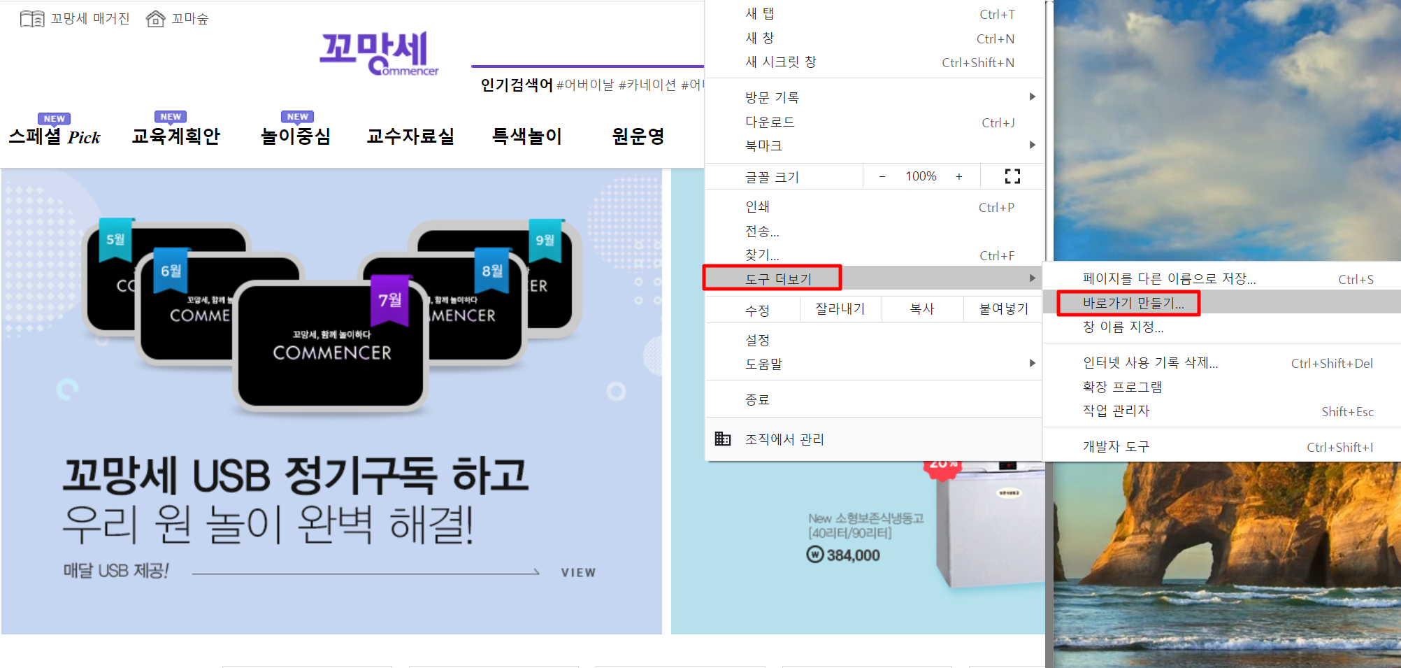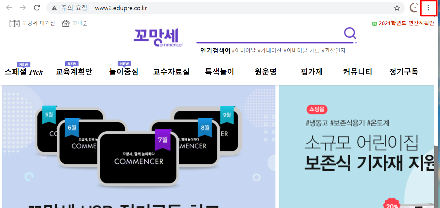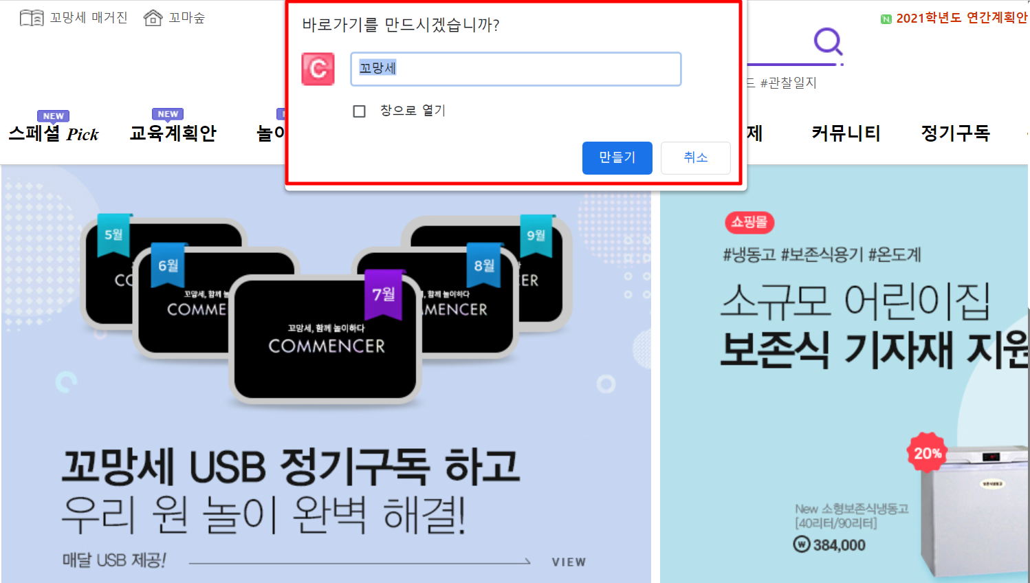 꼬망세 바로가기, 평생교육원, 쇼핑몰, 유치원, 어린이집