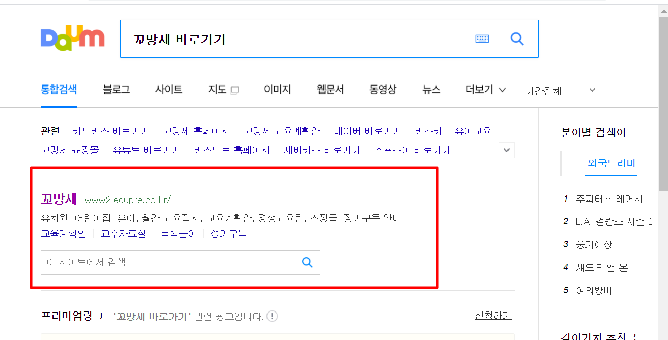 1. 다음(daum)검색창에 "꼬망세 바로가기"를 검색합니다.
