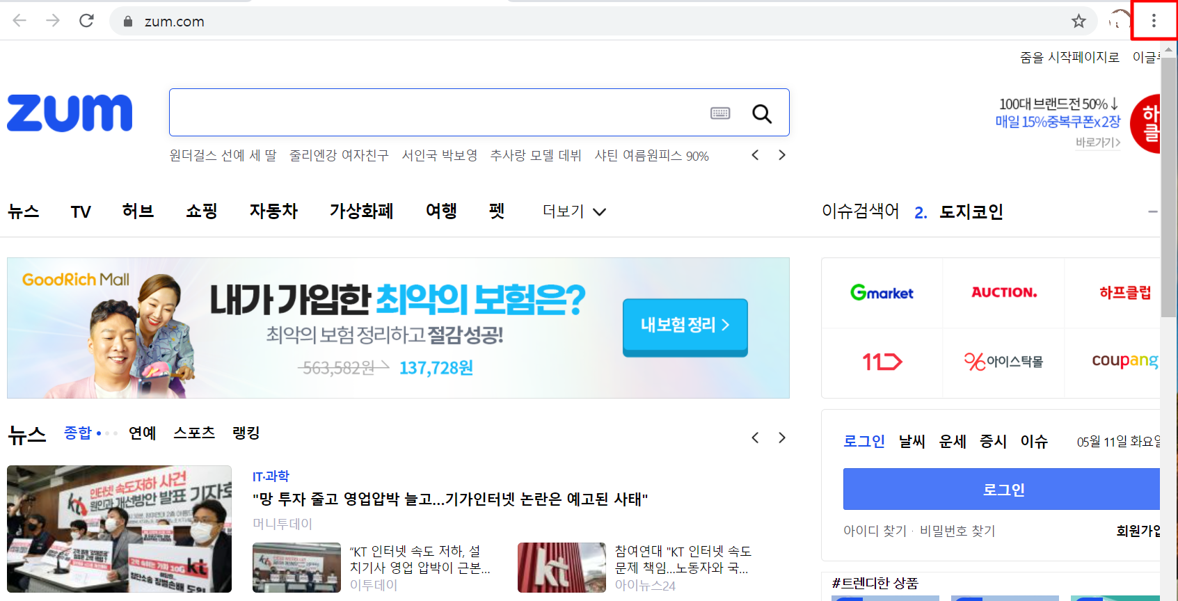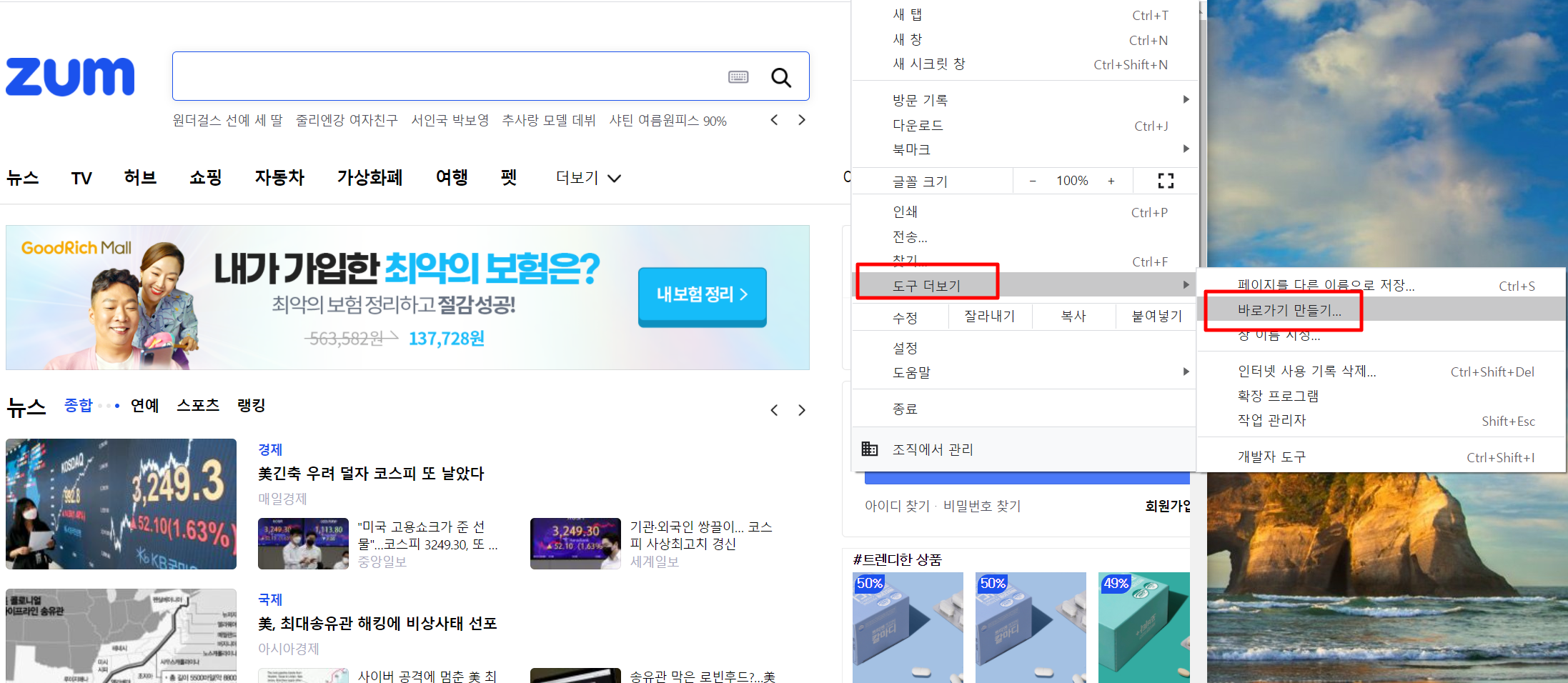 2. "zum 바로가기" 검색으로 나온 "zum" 사이트를 클릭하여 들어갑니다.