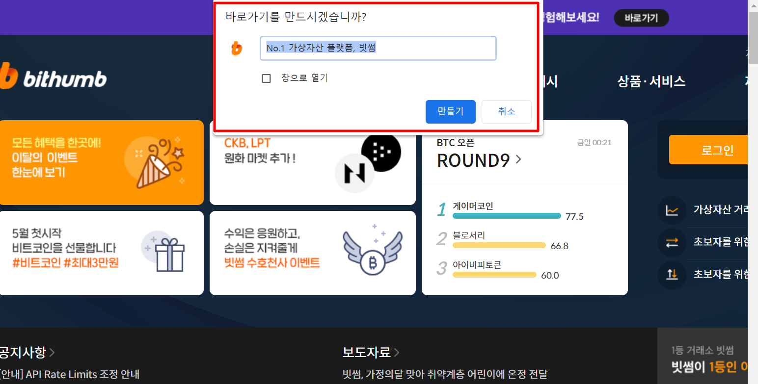 2. "빗썸 바로가기" 검색으로 나온 "빗썸" 사이트를 클릭하여 들어갑니다.