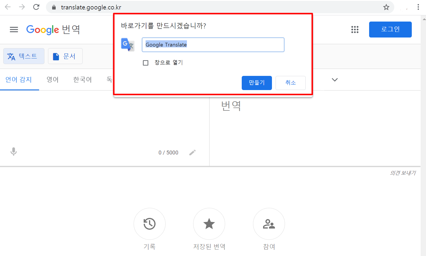 □ 구글번역기 바로가기 방법