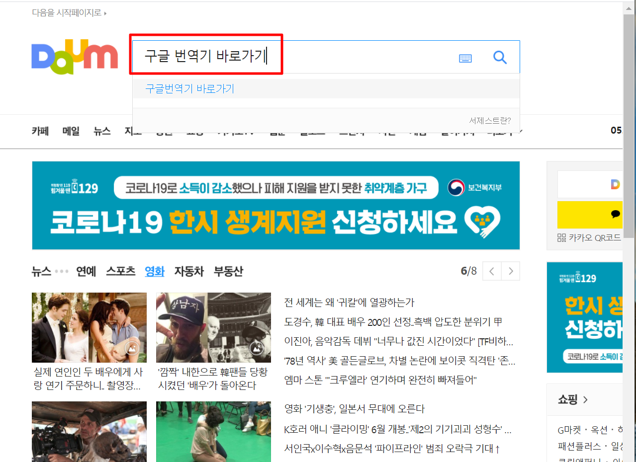 1. 다음(daum)검색창에 "구글번역기 바로가기"를 검색합니다.