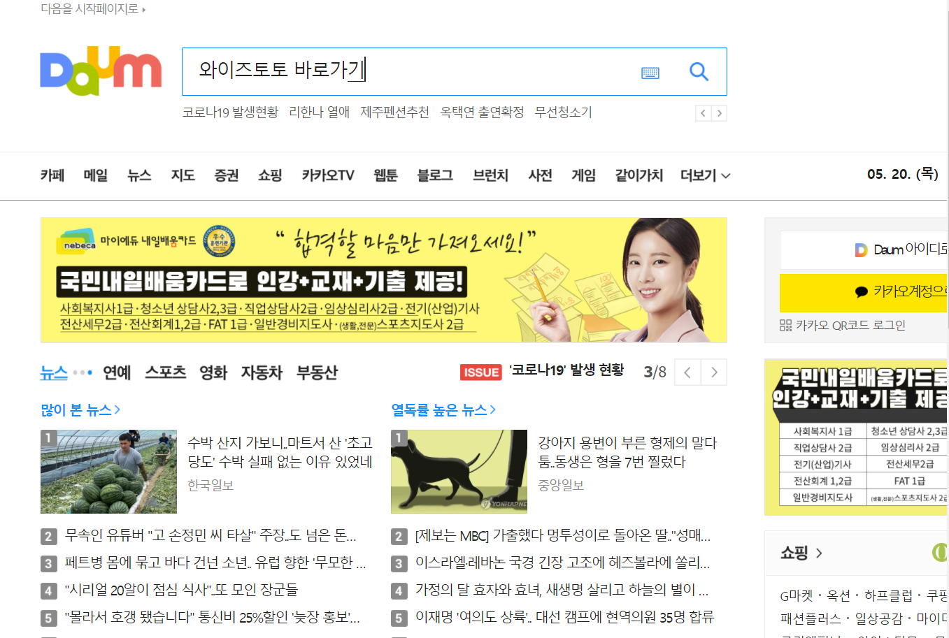 1. 다음(daum)검색창에 "와이즈토토 바로가기"를 검색합니다.
