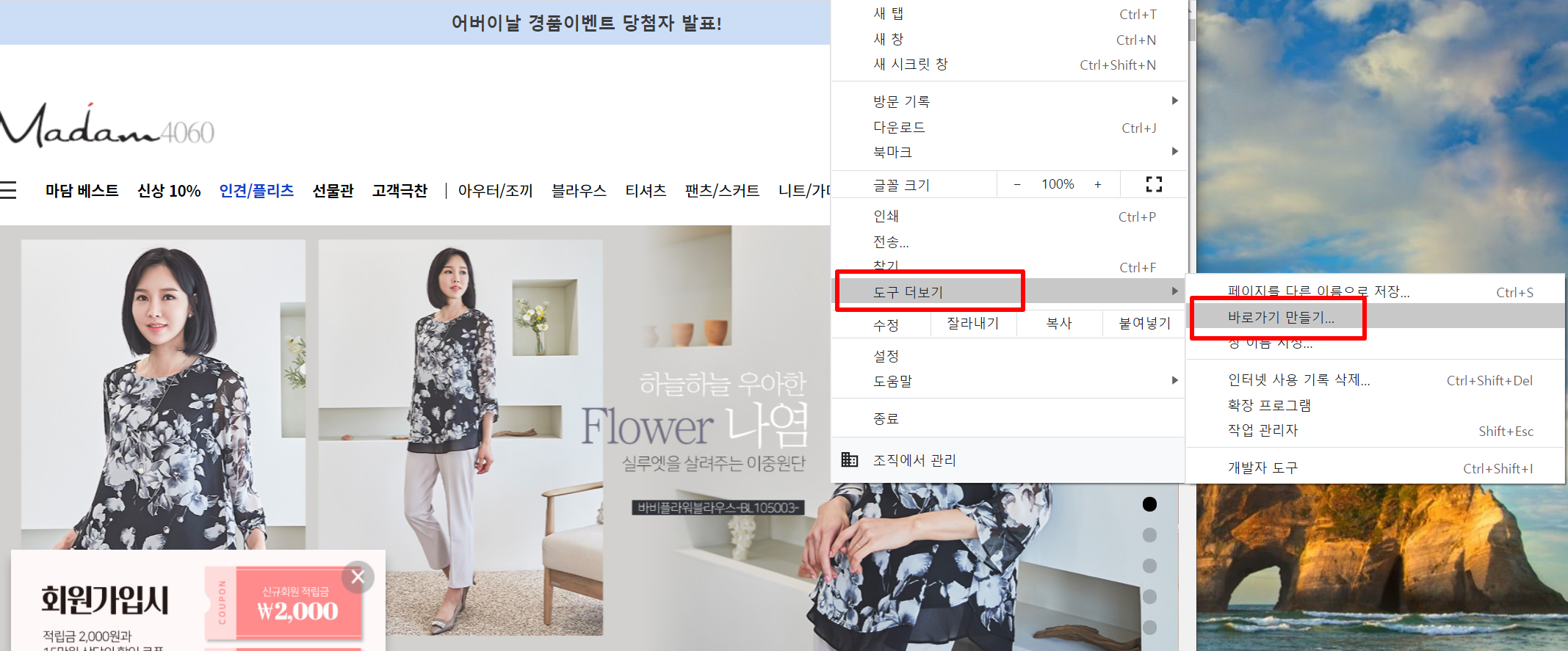 6. 바탕화면에 "마담4060" 아이콘이 뜹니다. 아이콘만 누르셔서 마담4060 쇼핑몰에 바로 접속하셔서 엄마옷, 마담복, 아줌마옷, 77사이즈, 블라우스, 재킷, 니트 등을 손쉽게 구매 하실 수 있습니다.