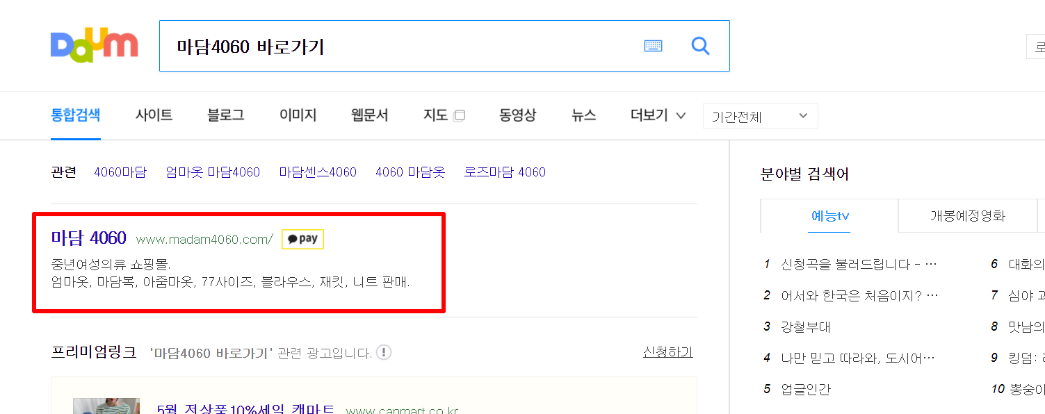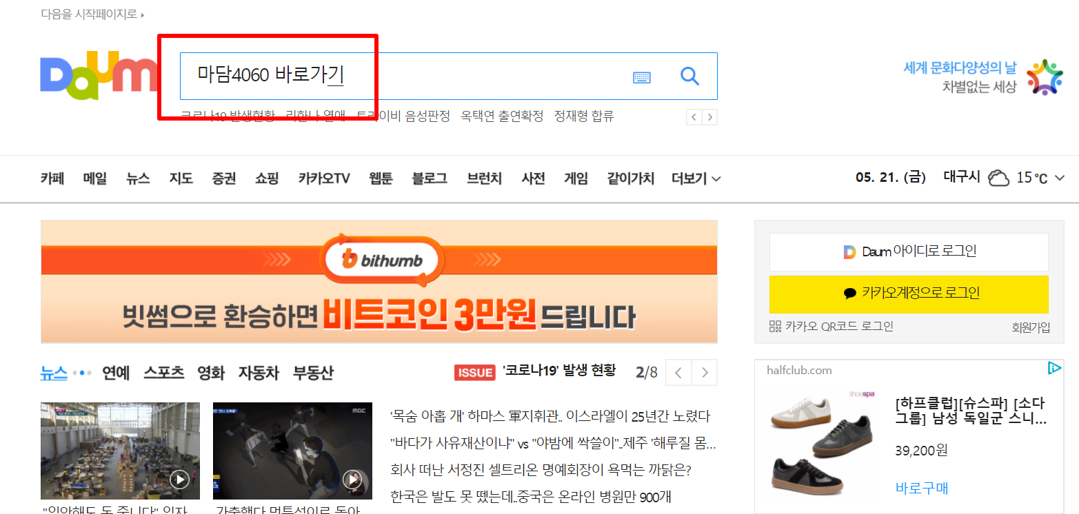 1. 다음(daum)검색창에 "마담4060 바로가기"를 검색합니다.