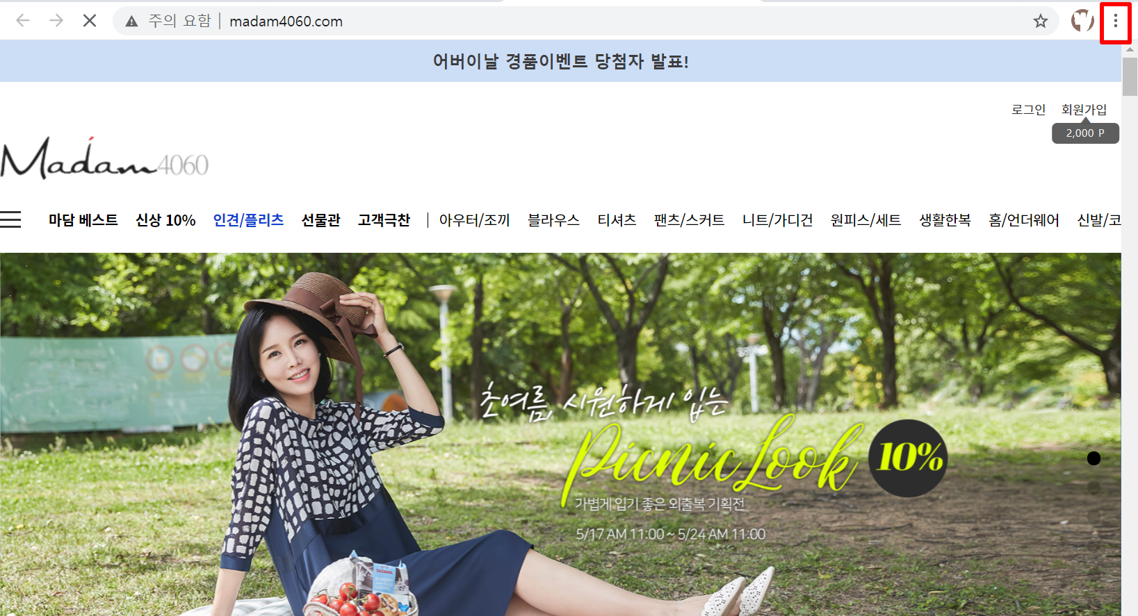 3. "마담4060" 사이트에 접속하여 오른쪽 상단에 보시면 "점 3개"를 누릅니다.