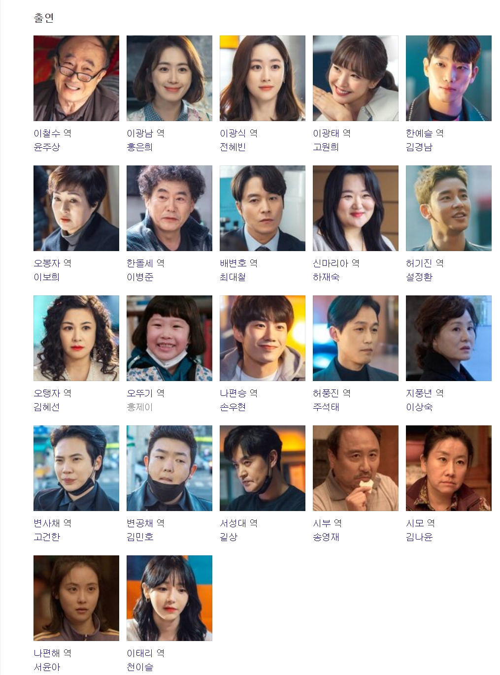 ◇ 출연진: 윤주상, 홍은희, 전혜빈, 고원희, 김경남, 이보희, 이병준 등