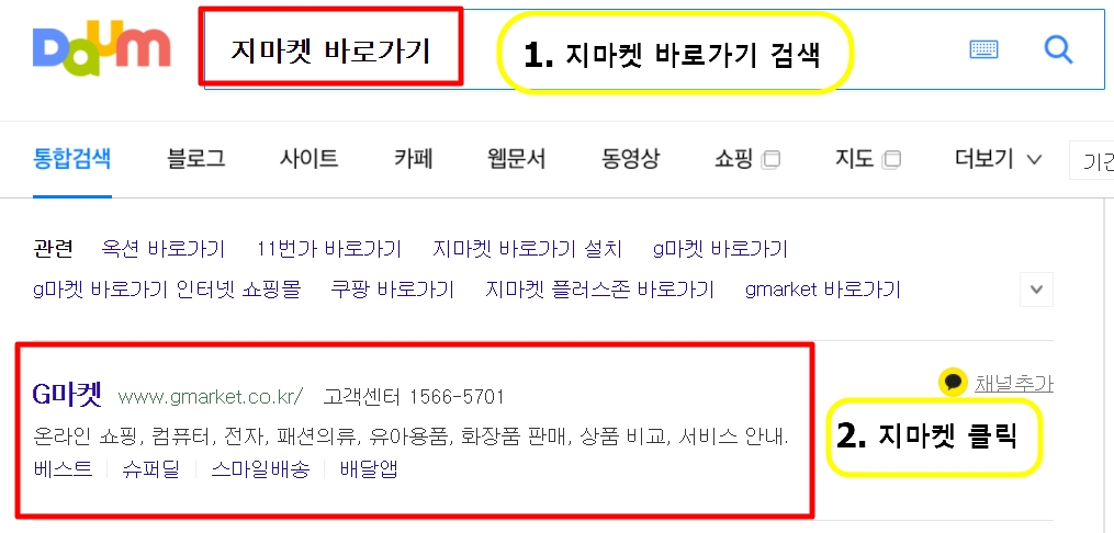 1. 다음(daum)에 "지마켓 바로가기" 검색하기
