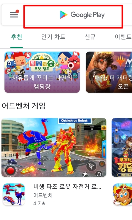 2. 위 구글 플레이 칸에 검색하시게 1회 클릭합니다.