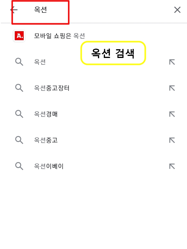 3. 검색창에 "옥션"을 써서 검색합니다.