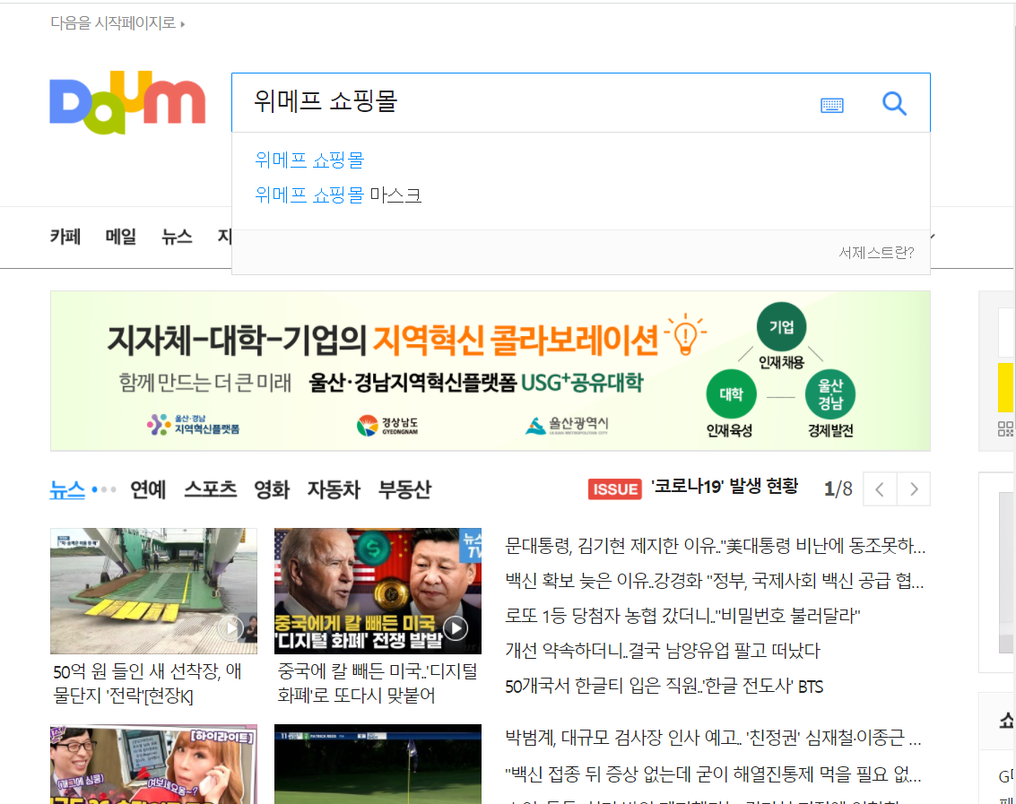 1. 다음(daum)검색창에 "위메프 쇼핑몰"을 검색합니다.