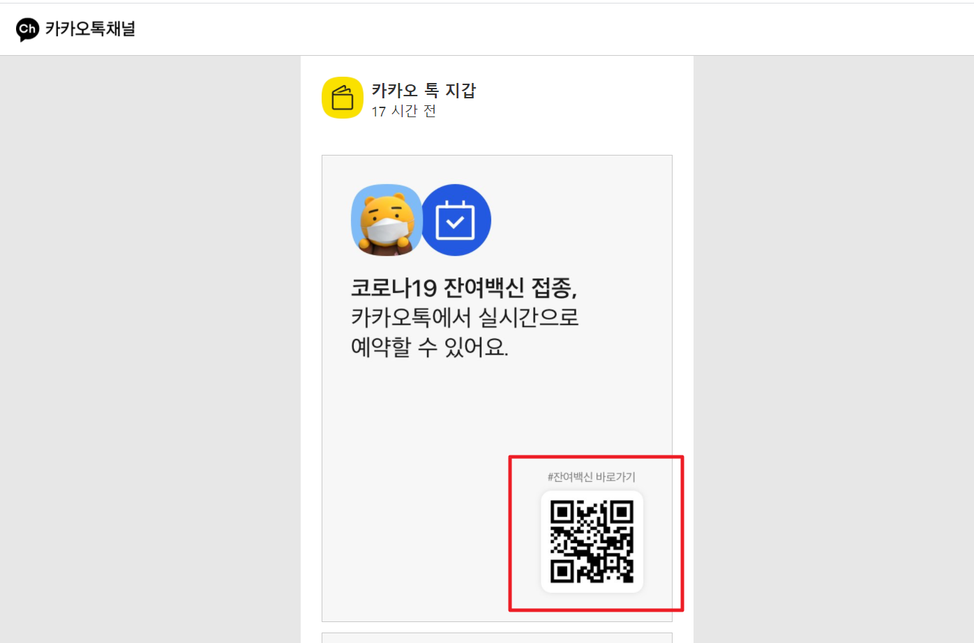3. 네이버와 달리 다음은 "잔여백신 바로가기" 바코드가 하나 뜹니다. 이것을 스캔만 하시면 "잔여백신" 조회 홈페이지로 이동합니다.