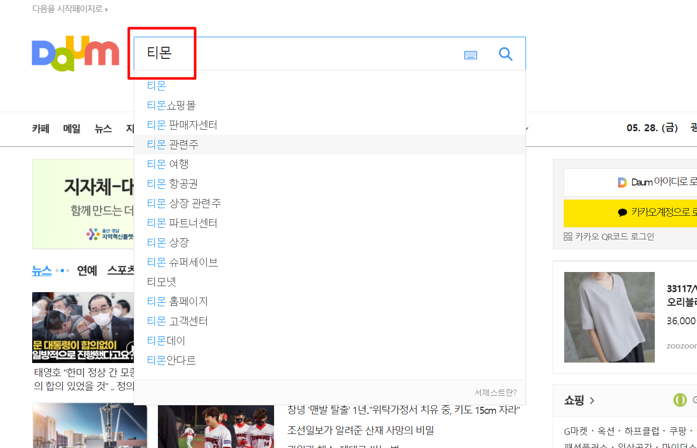 1. 다음(daum)검색창에 "티몬"을 검색합니다.