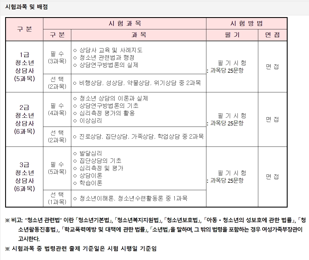 청소년상담사는 1급, 2급, 3급이 있습니다. 각 급수마다 응시자격이 다르니,