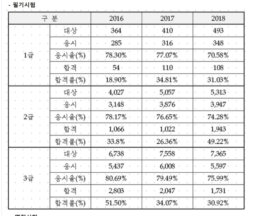 따라서 필기시험의 합격률이 저조한 것을 알 수 있는데요.