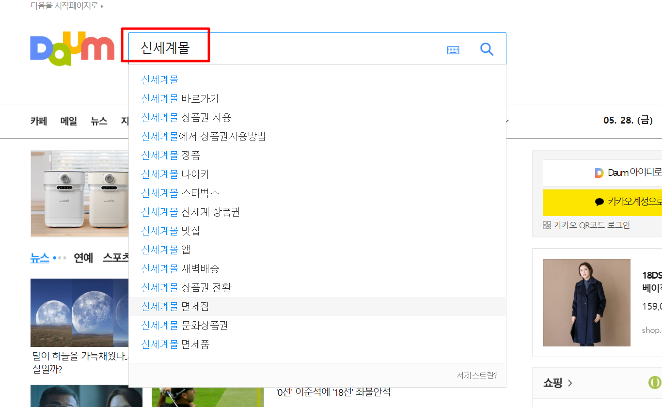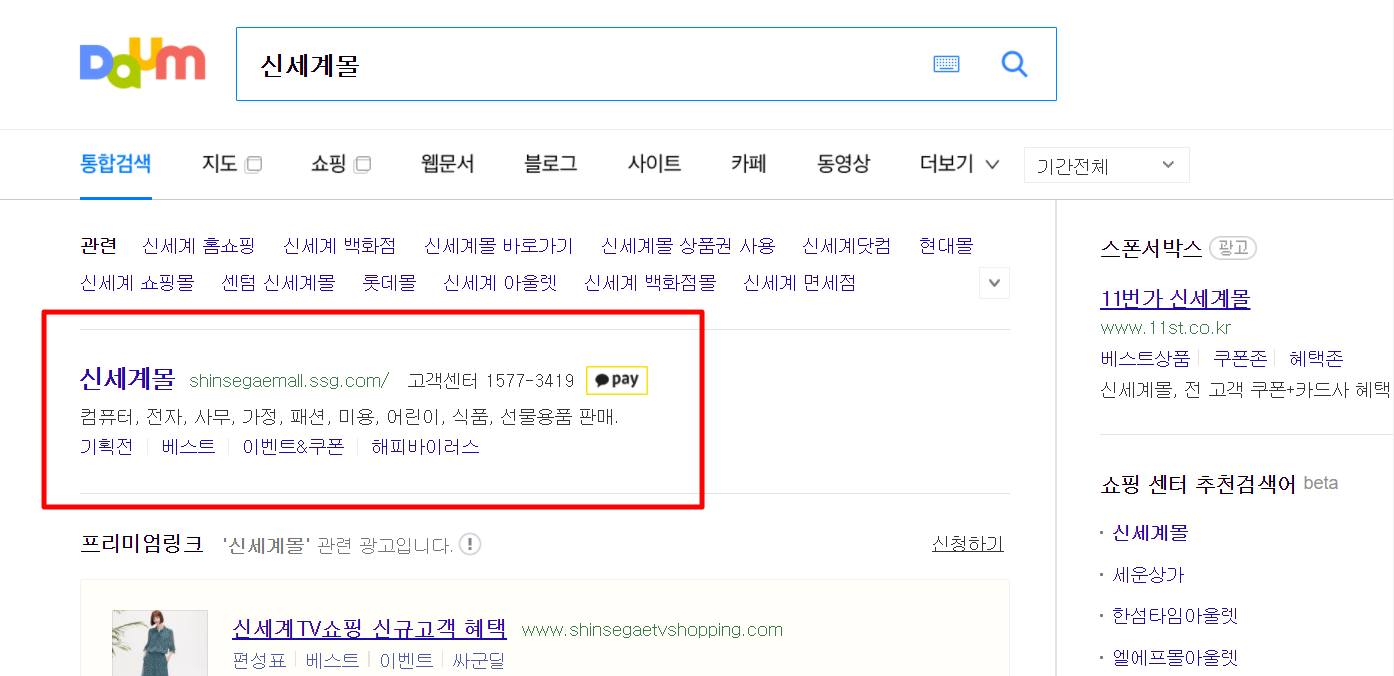 1. 다음(daum) 검색창에 "신세계몰"을 검색합니다.