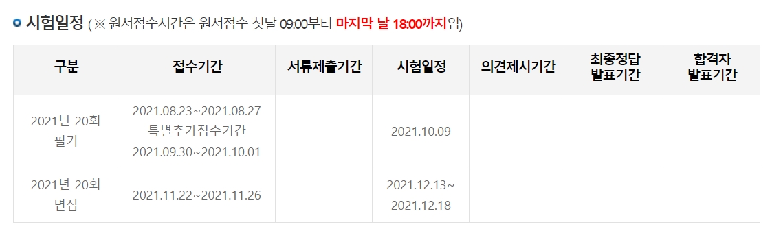21년 20회 필기 및 면접 청소년상담사 시험일정은 다음과 같습니다.