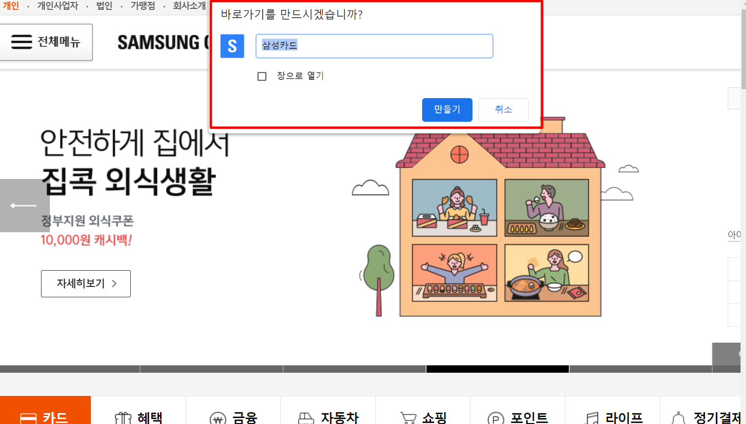 6. 바탕화면에 "삼성카드" 아이콘이 뜹니다. 삼성카드 아이콘만 누르시면 삼성카드 홈페이지에 바로 접속하실 수 있습니다. 삼성카드 홈페이지에 접속하셔서 삼성카드 발급, 삼성카드 포인트, 삼성카드 할인 혜택 등을 이용하실 수 있습니다.