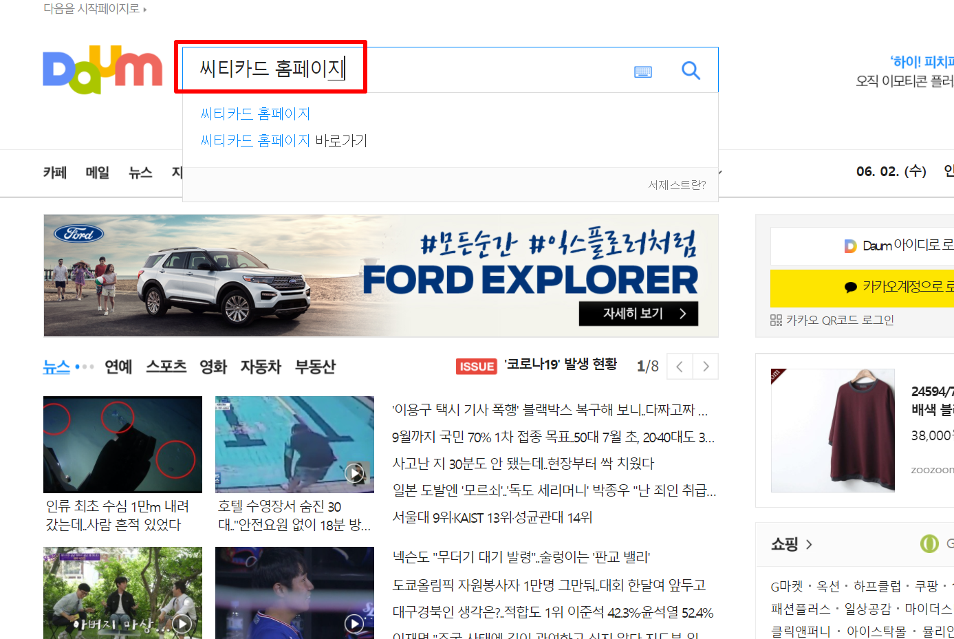 1. 다음(daum)검색창에 "씨티카드 홈페이지 바로가기"를 검색합니다.