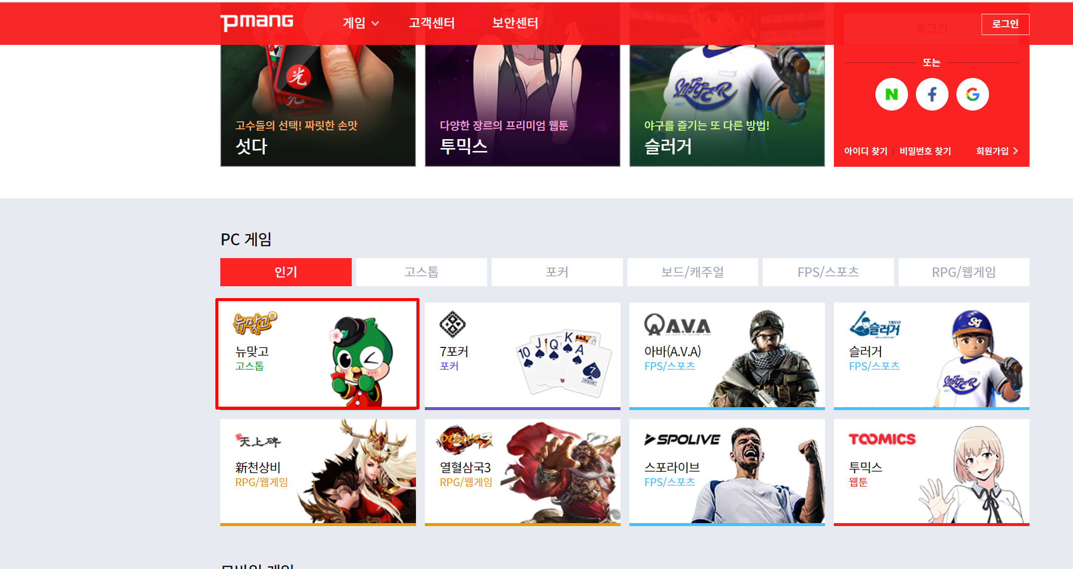 2. "피망뉴맞고 바로가기" 검색으로 나온 "피망뉴맞고" 사이트를 누르셔서 피망뉴맞고 홈페이지에 접속합니다.