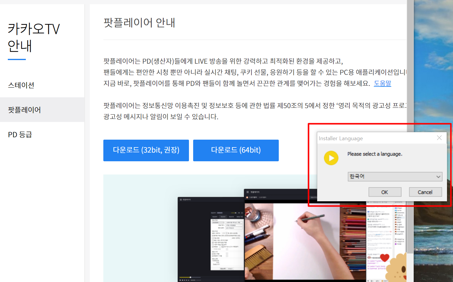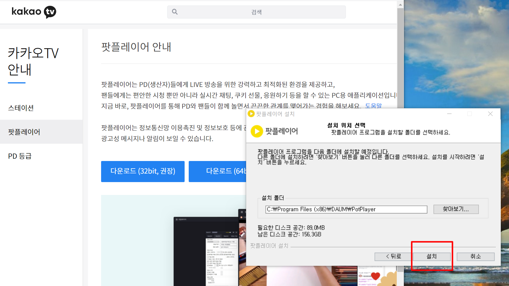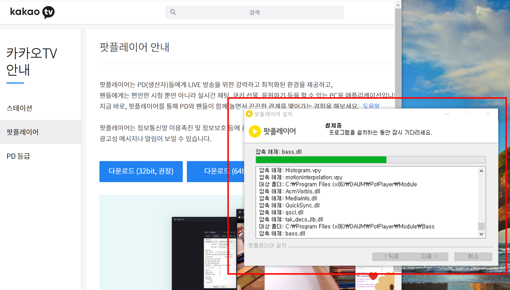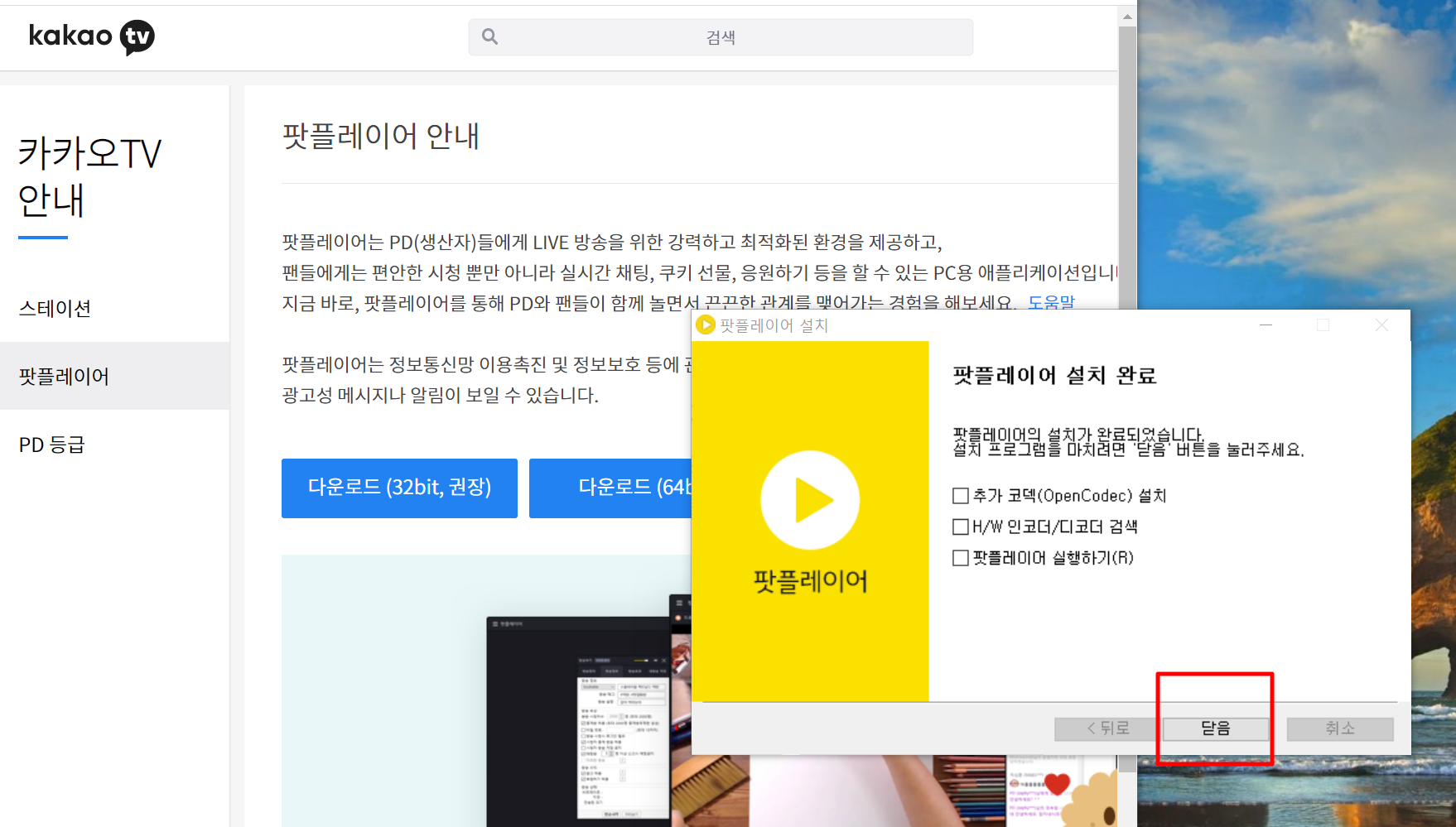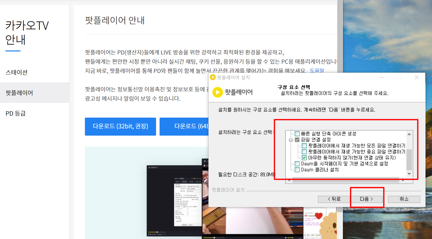 (무료) 다음팟플레이어 다운로드 (32비트, 64비트)