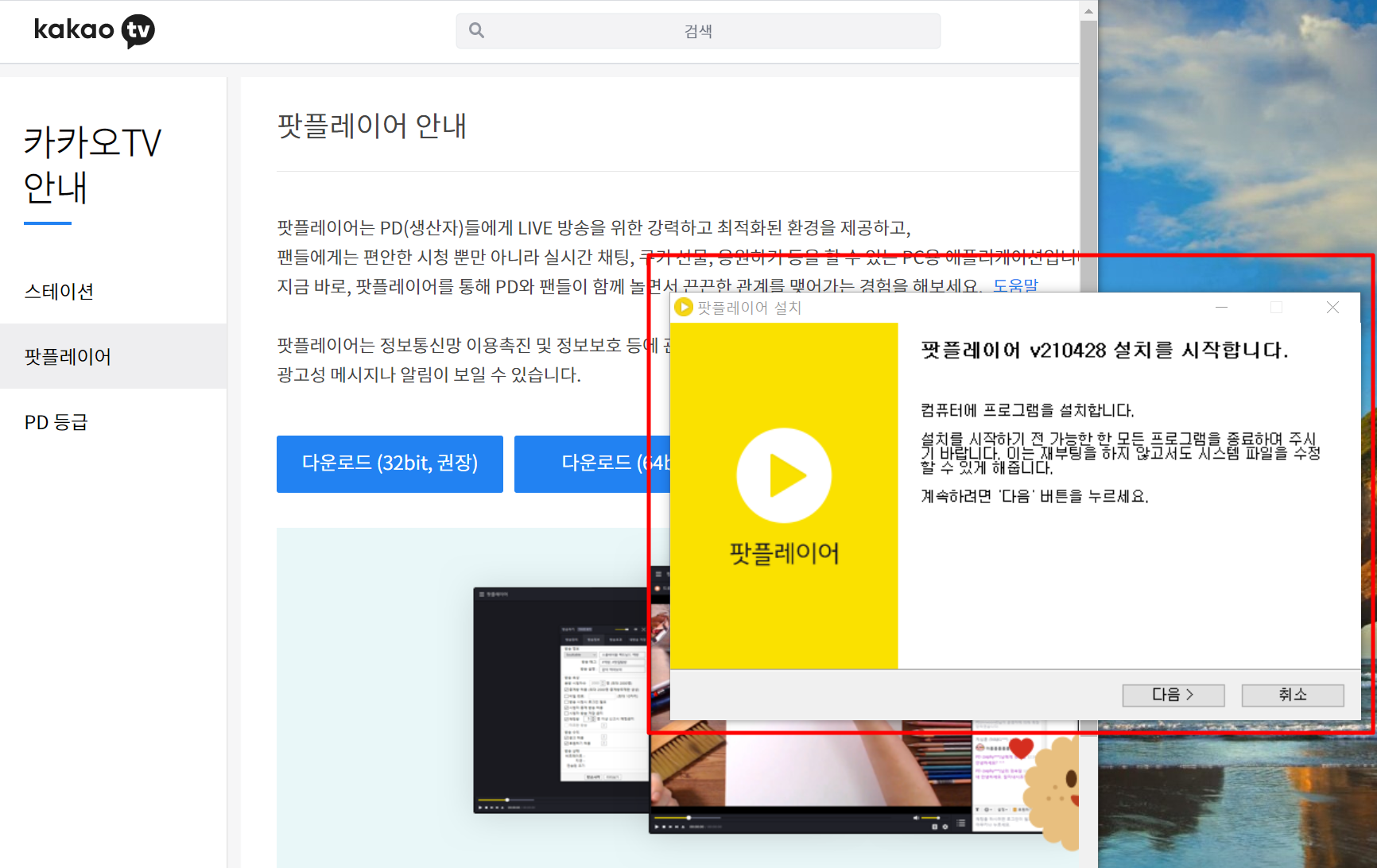 □ 다음팟플레이어 다운로드 32비트