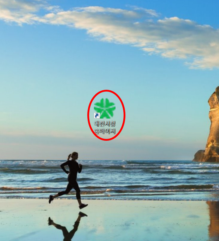 7. 바탕화면에 "대전시청 홈페이지" 아이콘이 뜹니다. 대전시청 홈페이지 아이콘을 누르시면 대전시청 홈페이지에 바로 접속을 하실 수 있습니다. 그리고 대전시정 주요 시책, 전자 민원창구, 사회복지, 관광 정보, 행정 서비스 안내등을 이용하실 수 있습니다.