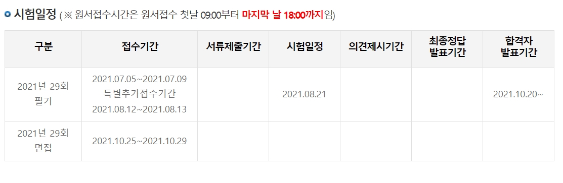 21년 29회 청소년지도사 시험일정은 다음과 같다.