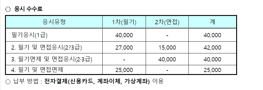 청소년지도사 시험 응시수수료는 다음과 같다.