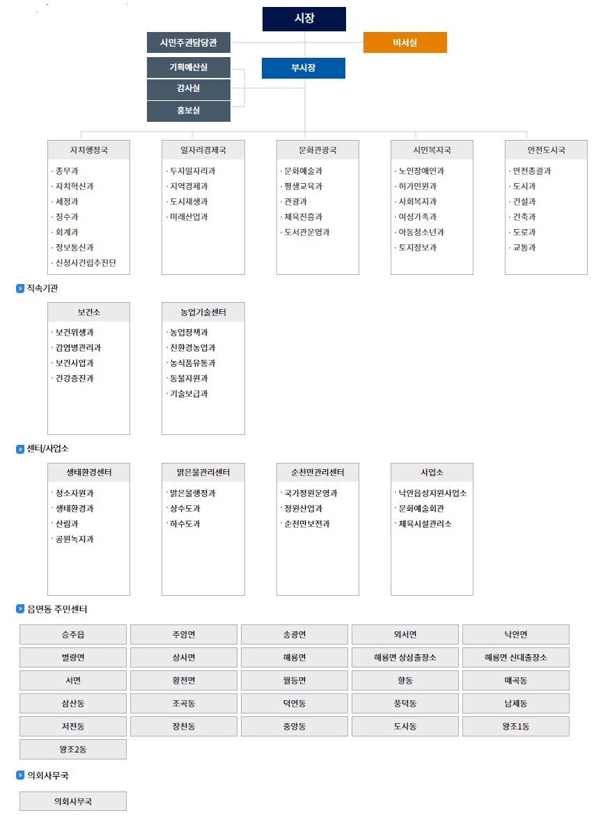 순천시청 홈페이지 바로가기, 조직도