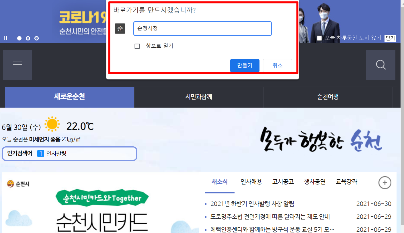 □ 순천시청 홈페이지 바로가기 방법