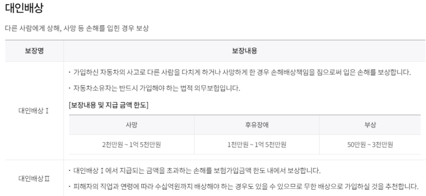 □ 삼성화재 다이렉트 자동차보험 보장내용