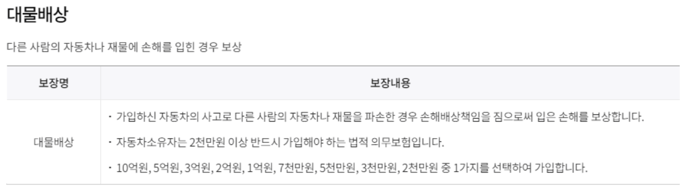 2. 상대방의 자동차나 재물에 대하여 손해를 입힌 경우 보장내용입니다.