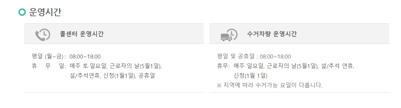 폐가전제품 무상방문수거 운영시간은 다음과 같습니다.