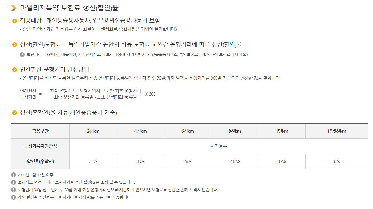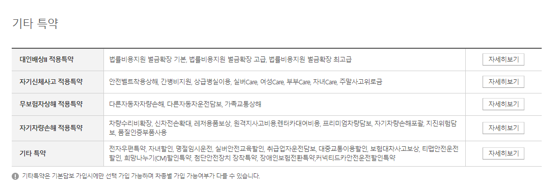 ※ 마일리지 특약과 승용차용일제특약은 동시 가입이 불가능합니다.