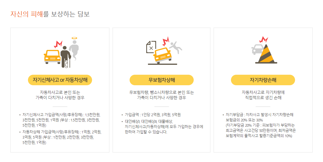 2. 자신의 피해를 보상하는 담보입니다.