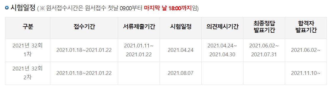 ○ 응시원서 접수마감일부터 역산하여 2년이 되는 날 이후에 실시된 시험으로 제1차 시험 원서접수 마감일까지 성적 발표 및 성적표가 교부된 경우에 한해 인정함.