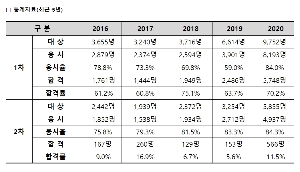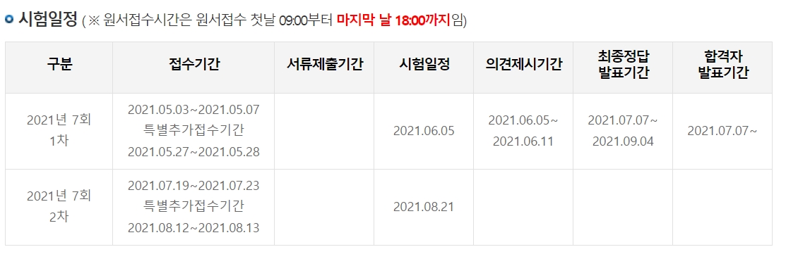 ※ 제 1차 시험 면제자 서류 제출기간: 21. 4. 28.(수) 09:00 ~ 5. 7.(금) 18:00